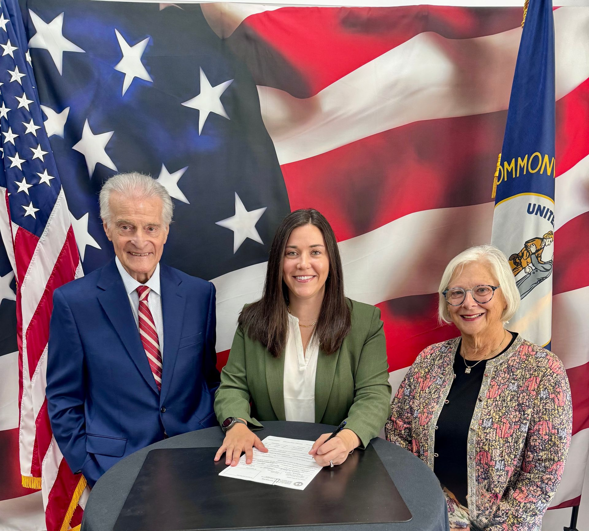 Jessica signs her paperwork to serve as our next District Court Judge in Division 2 with the support of Retried Circuit Judge Karen Conrad and Retired Oldham County Attorney John Carter.